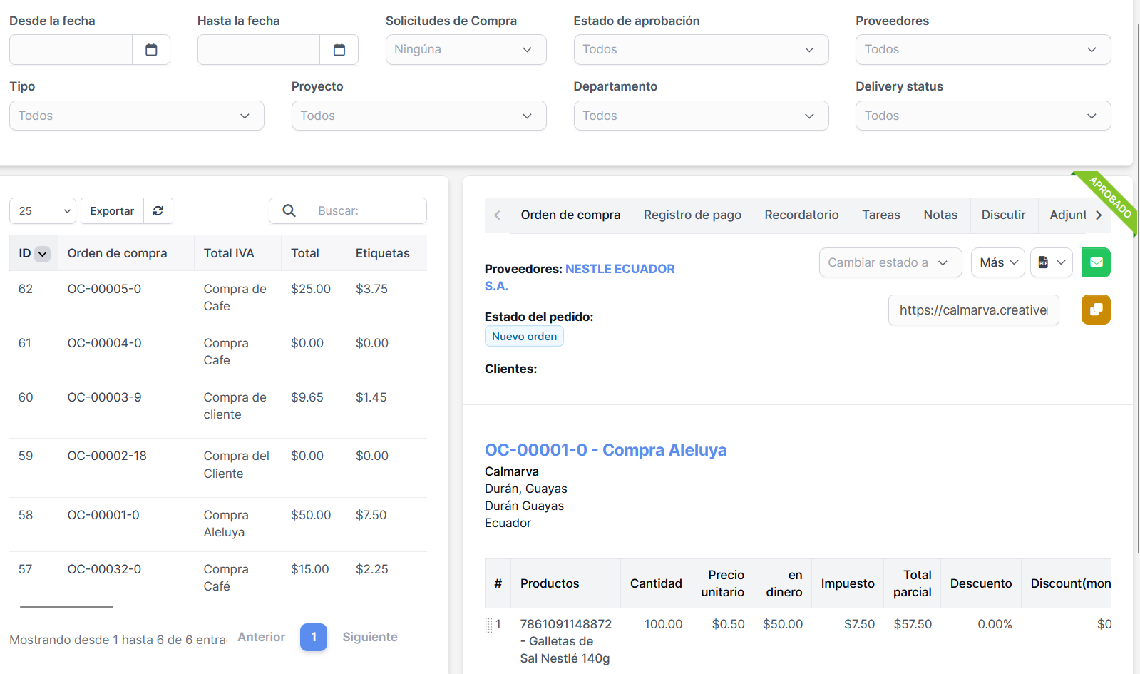 Comparador de cotizaciones, órdenes y facturas con retenciones. Portal de proveedores y recepción en bodega.