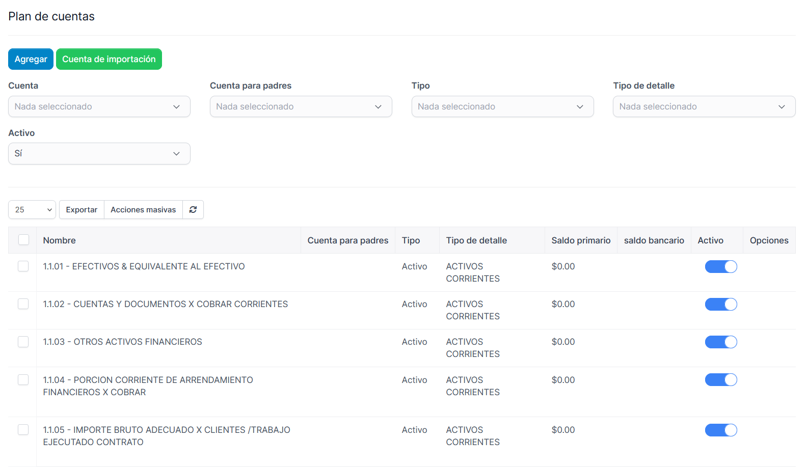 • Plan de cuentas y asientos.