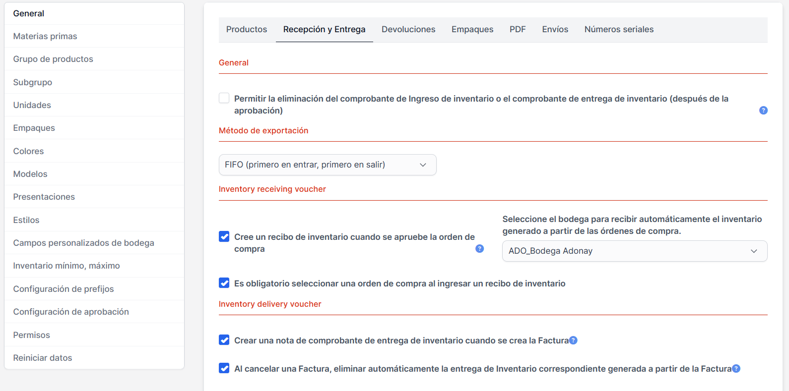 • Entradas/salidas/ajustes (Kardex).