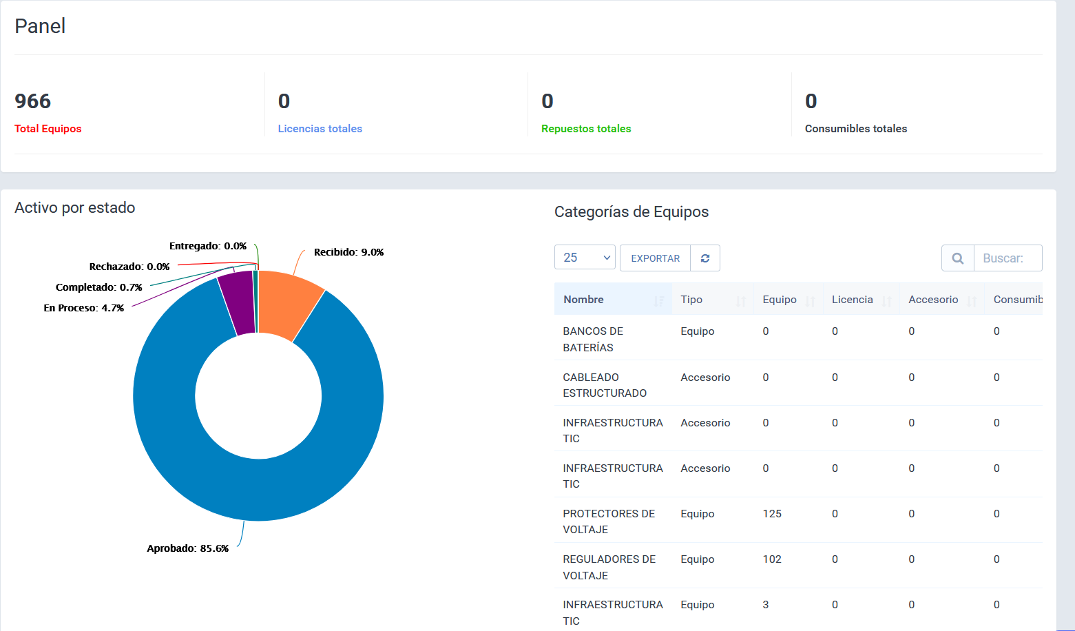 • Inventario e historial.